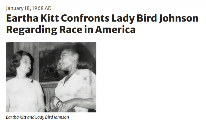 *On this date in 1968, Eartha Kitt addressed racism in America at a White House luncheon hosted by Lady Bird Johnson.
